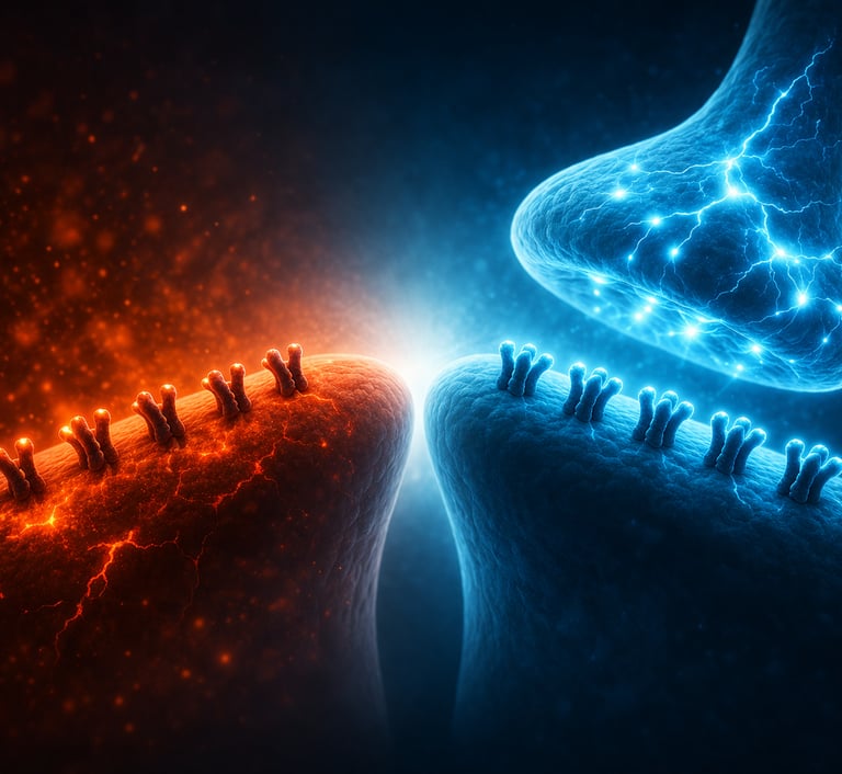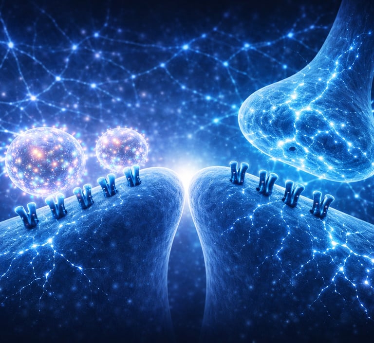 Our nanotherapeutics are just large enough to bypass synaptic clefts yet small enough to be distributed throughout the brain, selectively blocking extrasynaptic NMDA receptors while preserving normal neural communication.